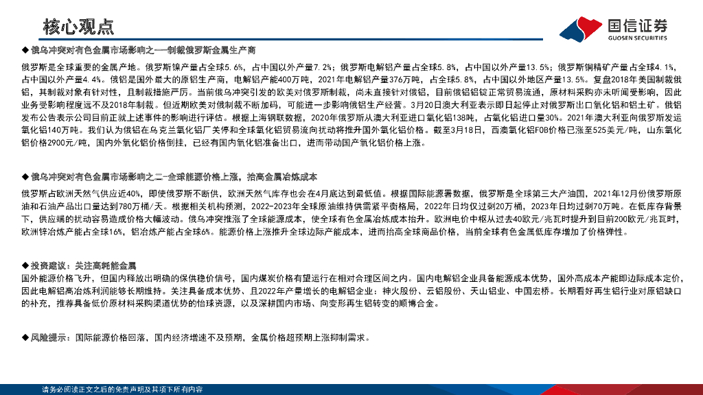 国信证券:有色金属专题报告:俄乌冲突对有色金属市场影响 两条影响路径,关注高耗能金属.pdf