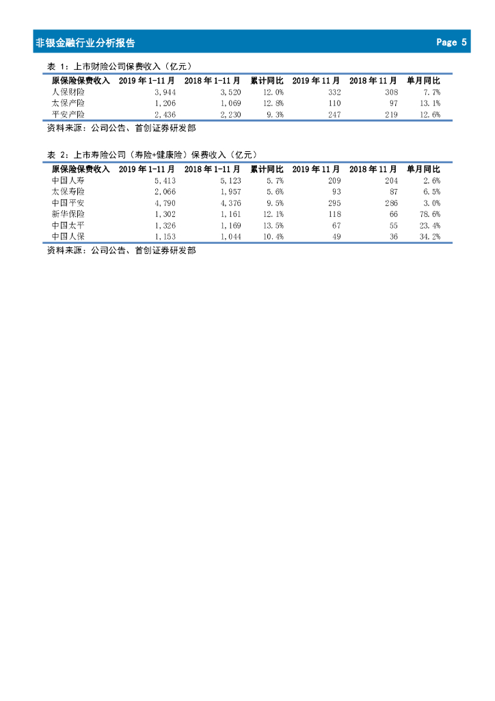 首创证券:2019年11月保险数据点评:弱周期下保费收入增速放缓,居民需求侧重调整.pdf