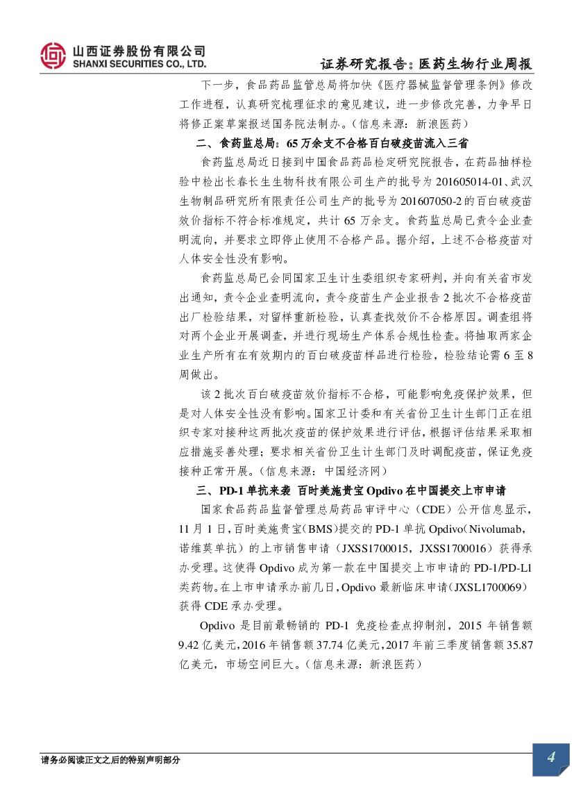 山西证券:医药生物行业数据周报:Opdivo上市申请获受理,推动国内PD~1单抗研发进程.pdf