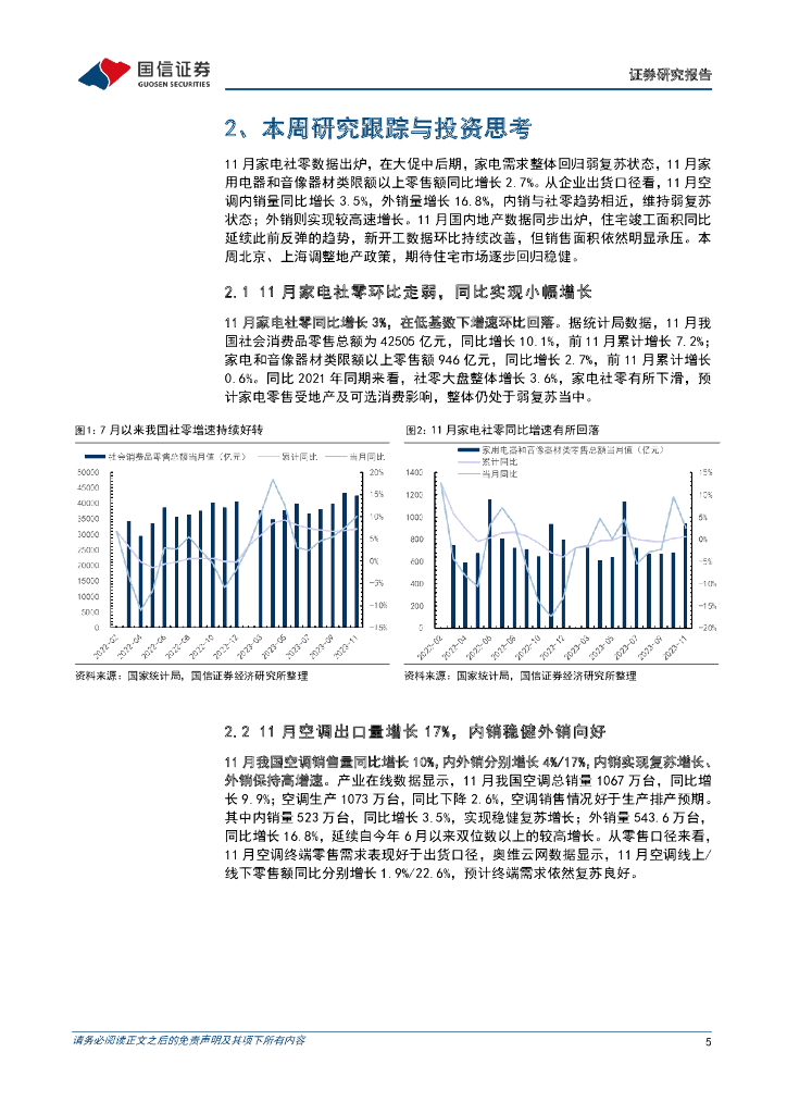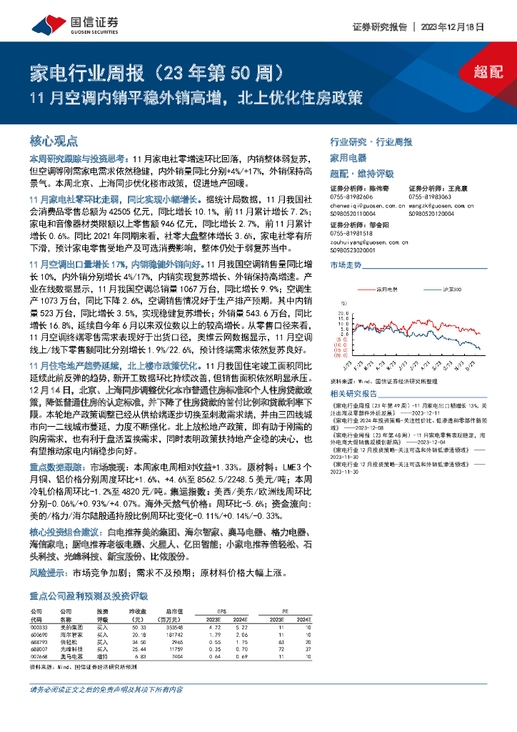 国信证券:家电行业周报(23年第50周):11月空调内销平稳外销高增,北上优化住房政策.pdf