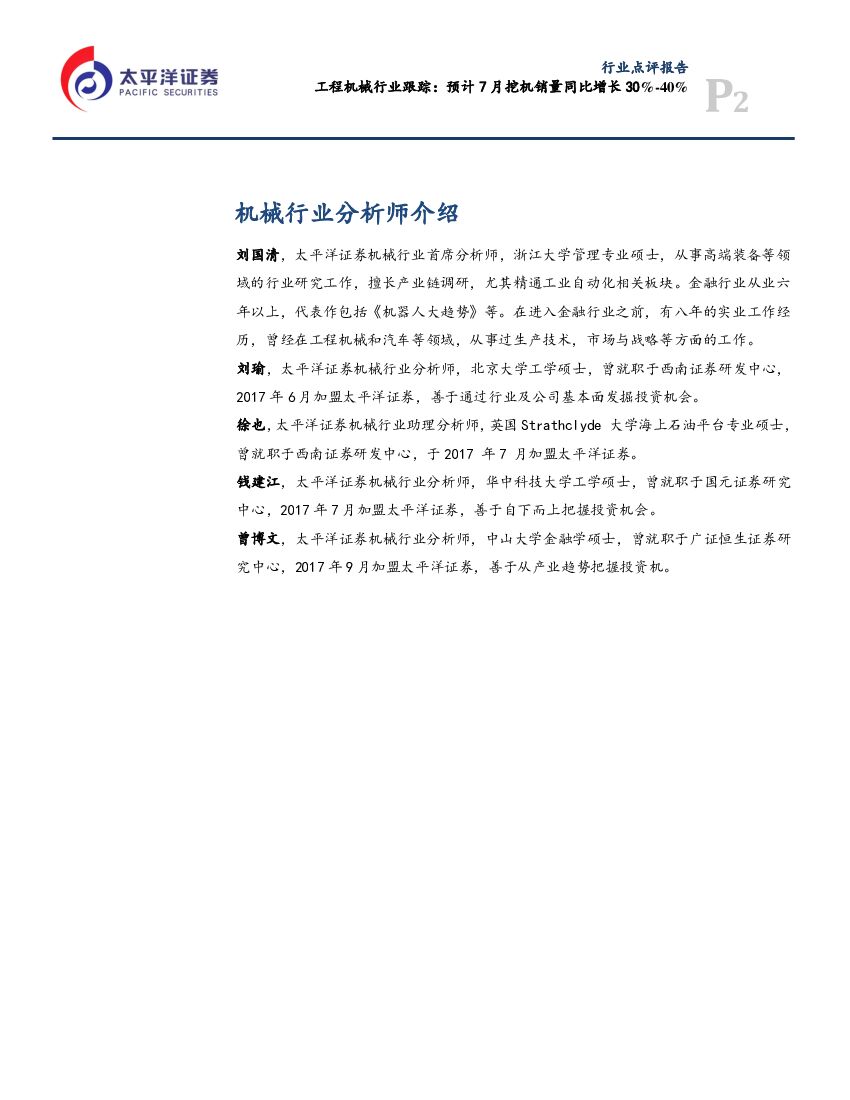 太平洋证券:工程机械行业跟踪:预计7月挖机销量同比增长30%-40%.pdf