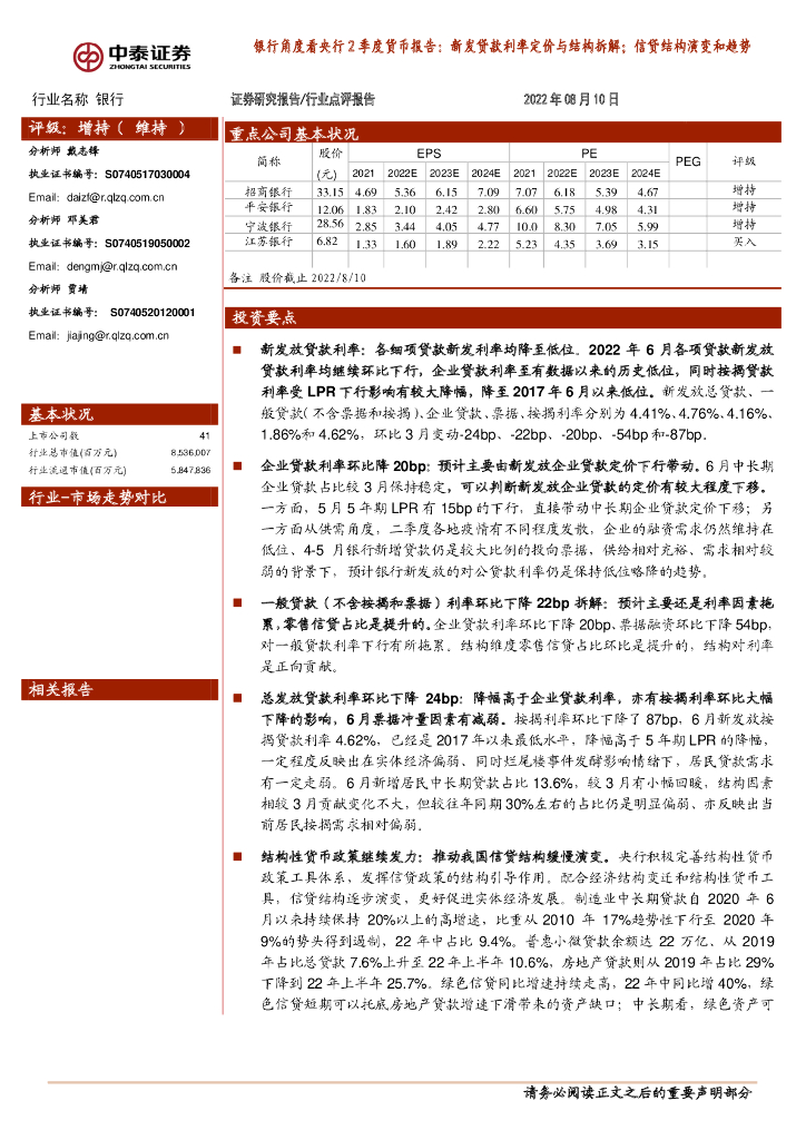 中泰证券:银行角度看央行2季度货币报告:新发贷款利率定价与结构拆解;信贷结构演变和趋势.pdf