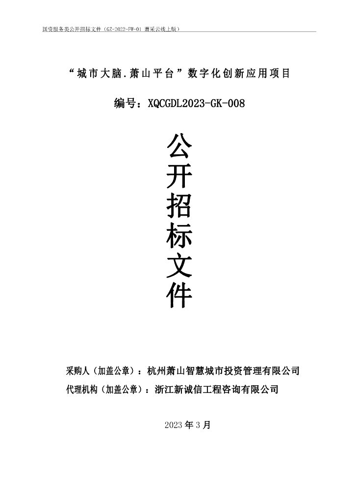 杭州“城市大脑 萧山平台”数字化创新应用项目公开招标文件.pdf