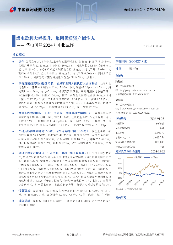 中国银河:华电国际2024年中报点评:煤电盈利大幅提升,集团优质资产拟注入.pdf