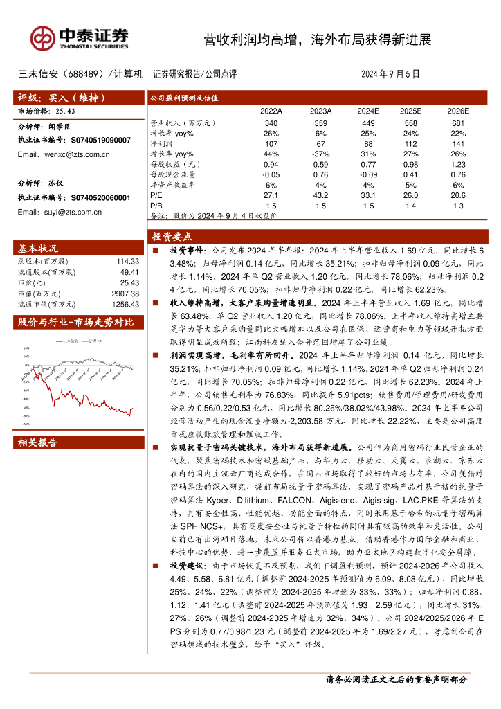 中泰证券:三未信安(688489)-营收利润均高增,海外布局获得新进展.pdf