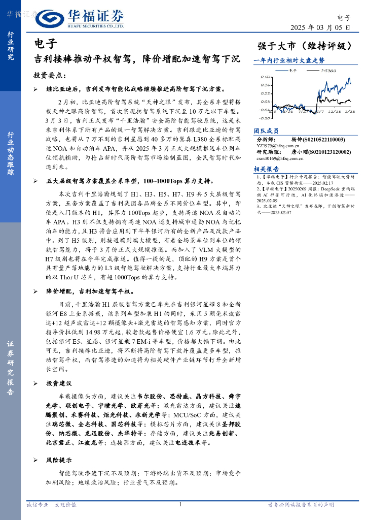 华福证券:电子:吉利接棒推动平权智驾,降价增配加速智驾下沉.pdf