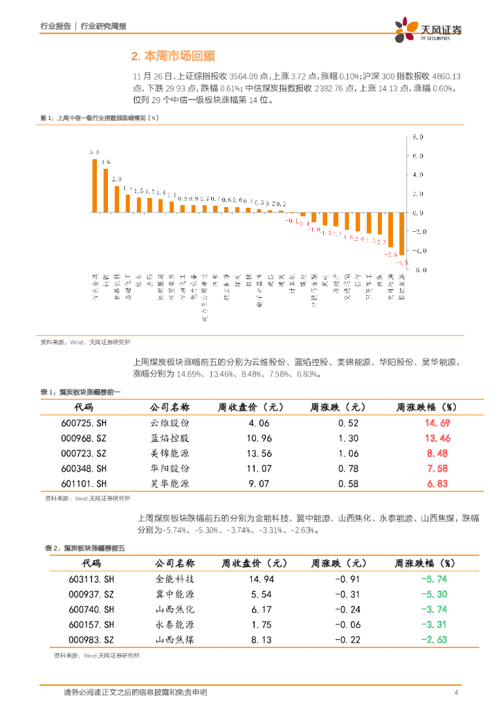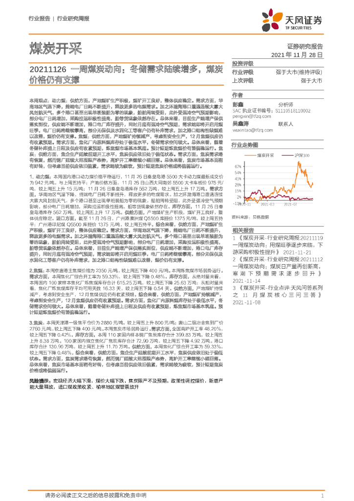 天风证券:一周煤炭动向:冬储需求陆续增多,煤炭价格仍有支撑.pdf