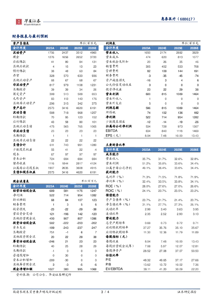 华安证券:惠泰医疗(688617)-2024Q3业绩延续高增长,降本增效效果显著.pdf