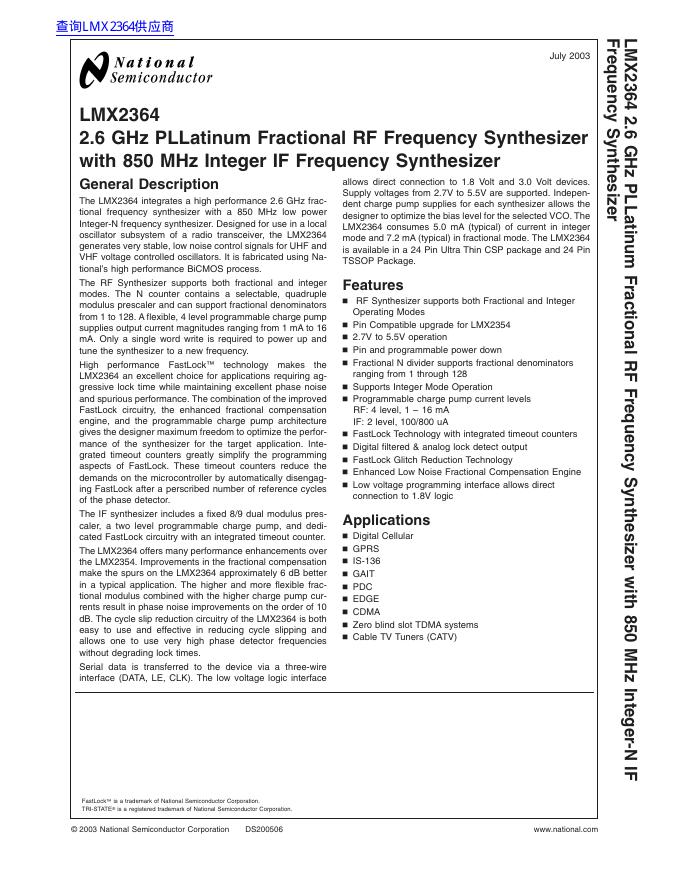 NATIONAL SEMICONDUCTOR - May 27, 2008 DS15BA101 1.5 Gbps Differential Buffer with Adjustable Output Voltage General 说明书