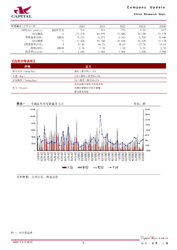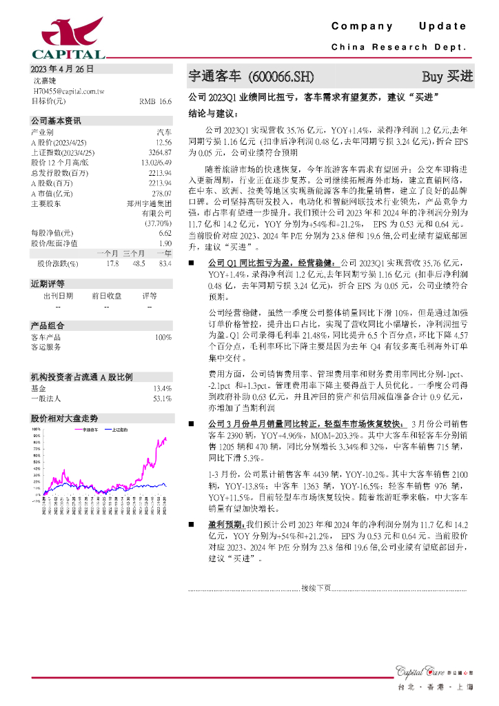 群益证券:宇通客车(600066)-公司2023Q1业绩同比扭亏,客车需求有望复苏,建议“买进”.pdf