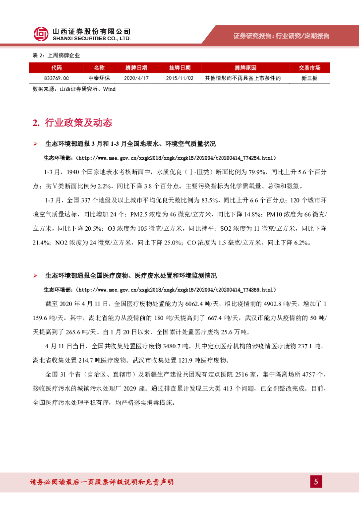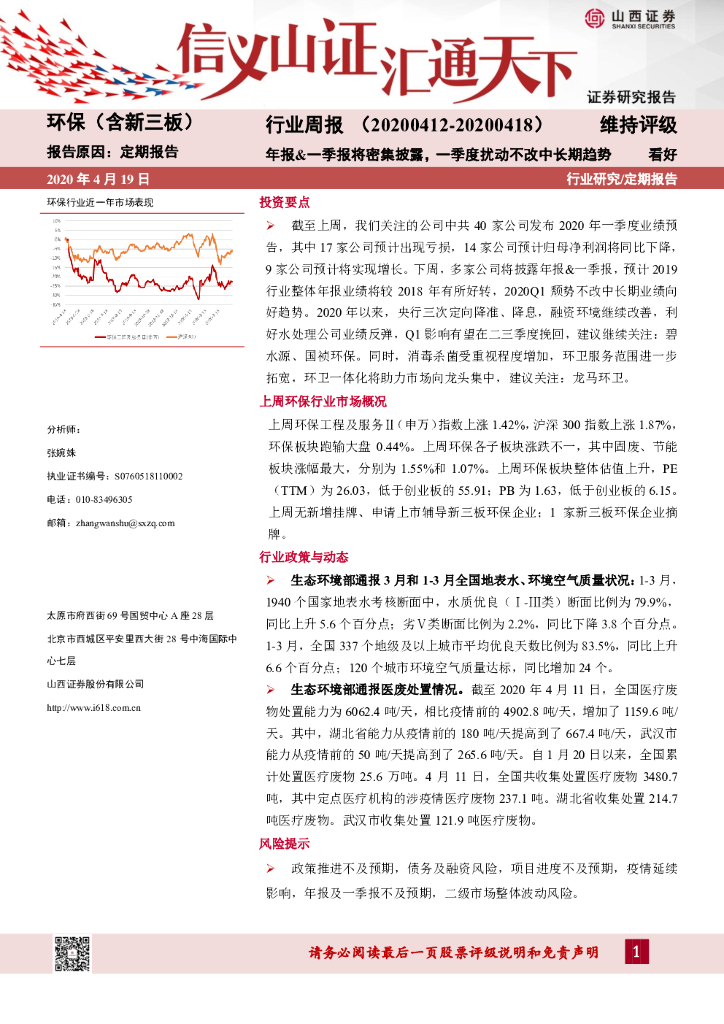 山西证券:环保(含新三板)行业周报:年报&一季报将密集披露,一季度扰动不改中长期趋势.pdf