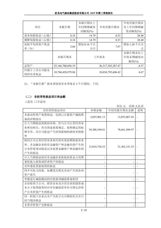 600580-卧龙电驱:卧龙电驱2025年第三季度报告.pdf