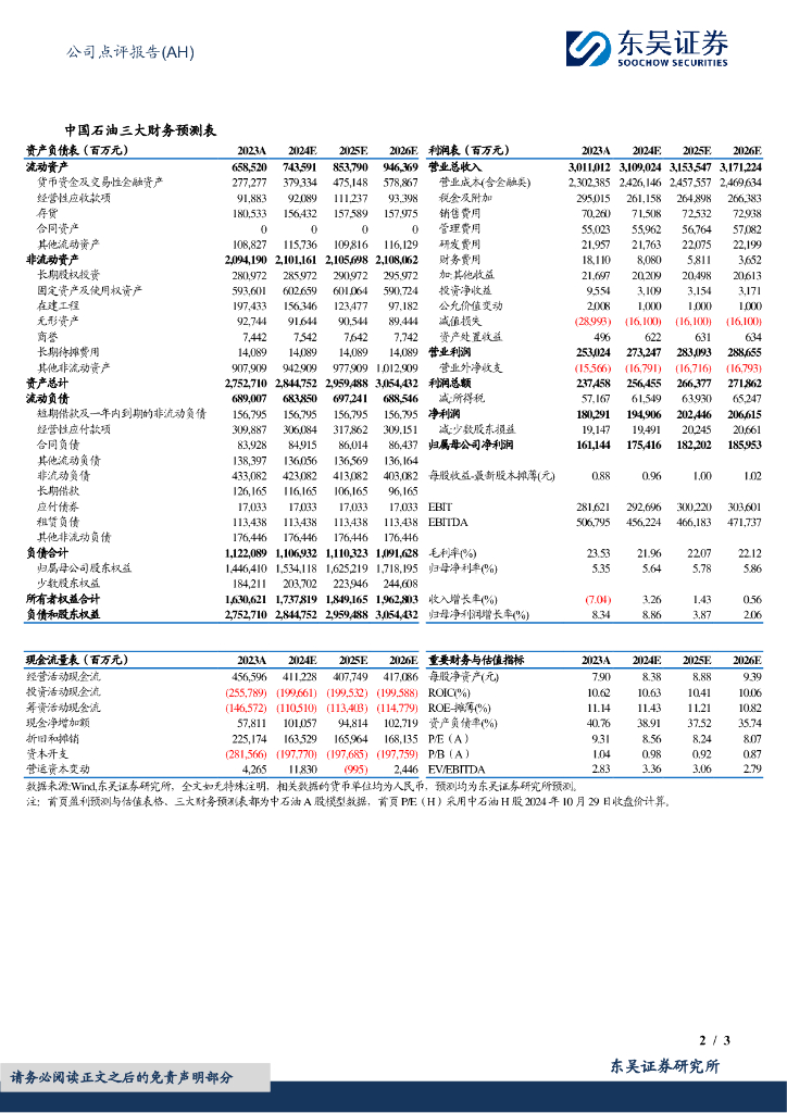 东吴证券:中国石油(601857)-2024年三季报点评:Q3利润环比上升,天然气盈利能力优异.pdf