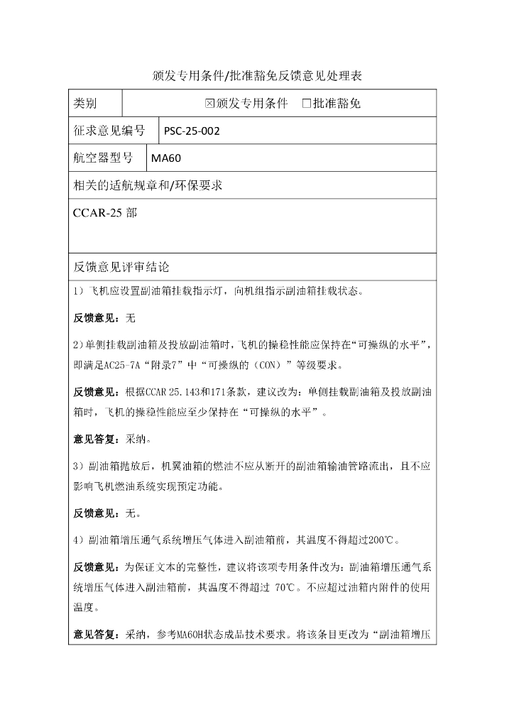 颁发专用条件批准豁免反馈意见处理表.pdf