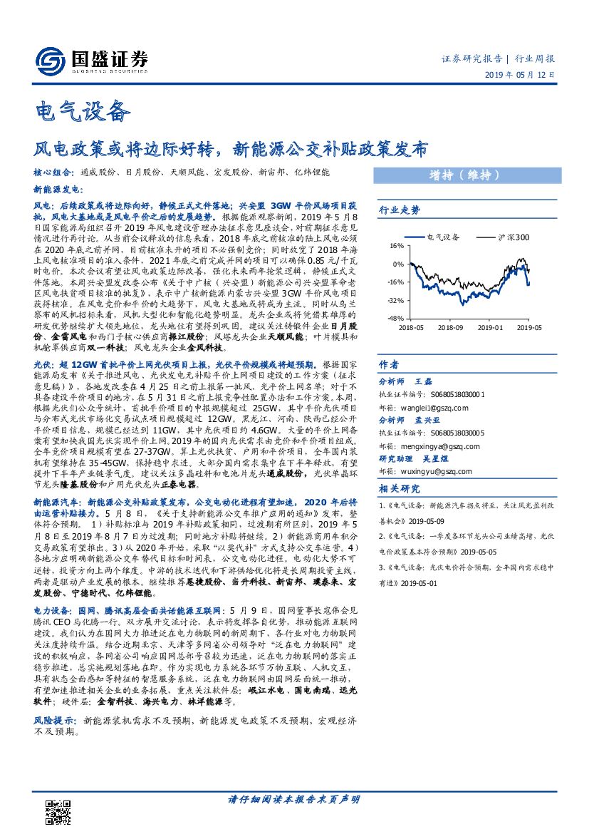 国盛证券:电气设备行业周报:风电政策或将边际好转,新能源公交补贴政策发布.pdf