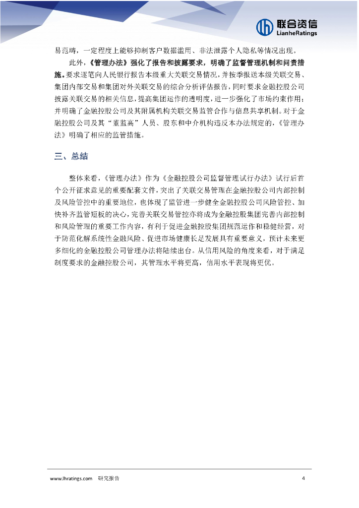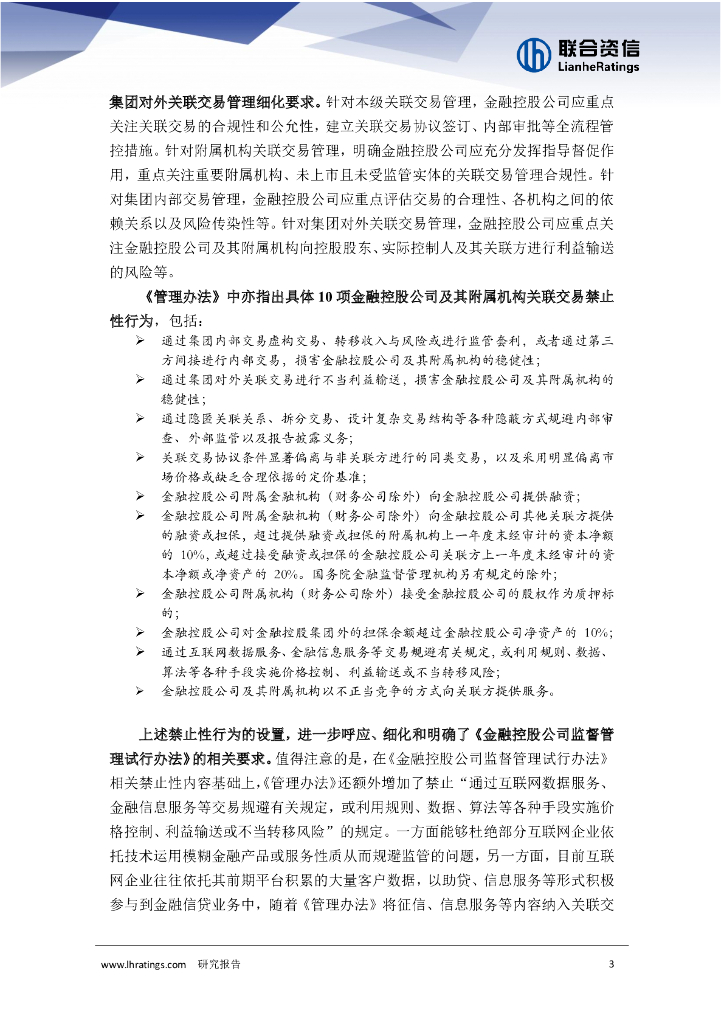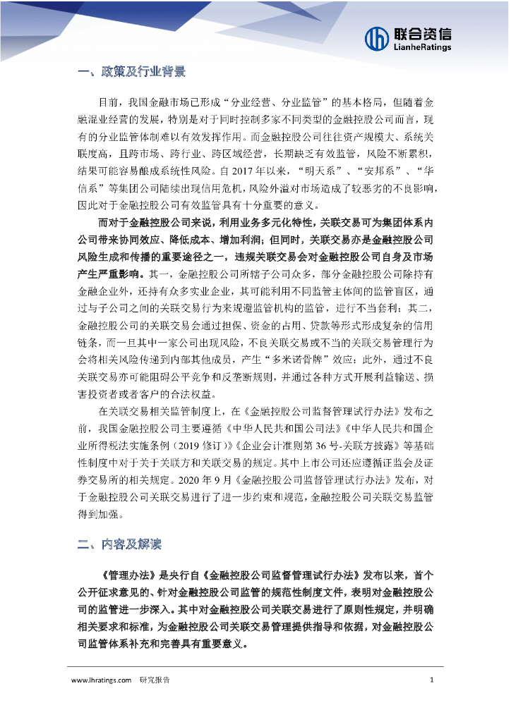联合资信:《金融控股公司关联交易管理办法(征求意见稿)》解读.pdf