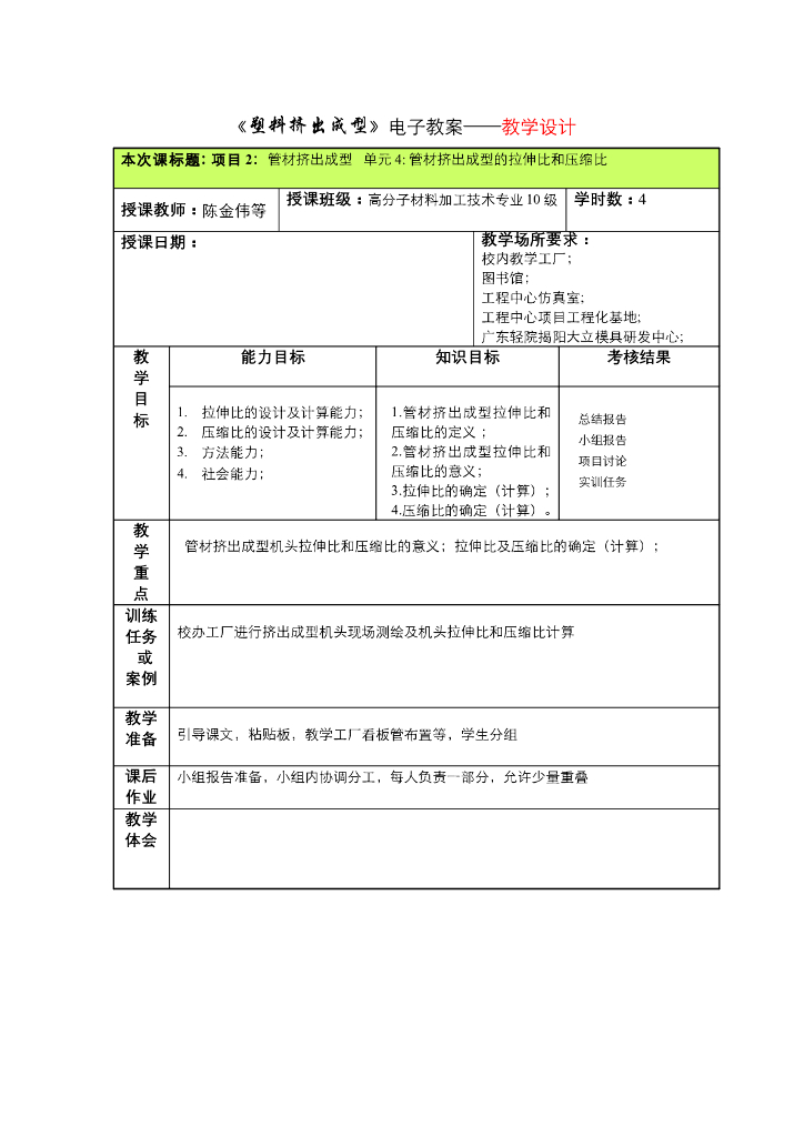 《塑料挤出成型》电子教案-项目2:管材挤出成型 单元4 管材挤出成型的拉伸比和压缩比.pdf