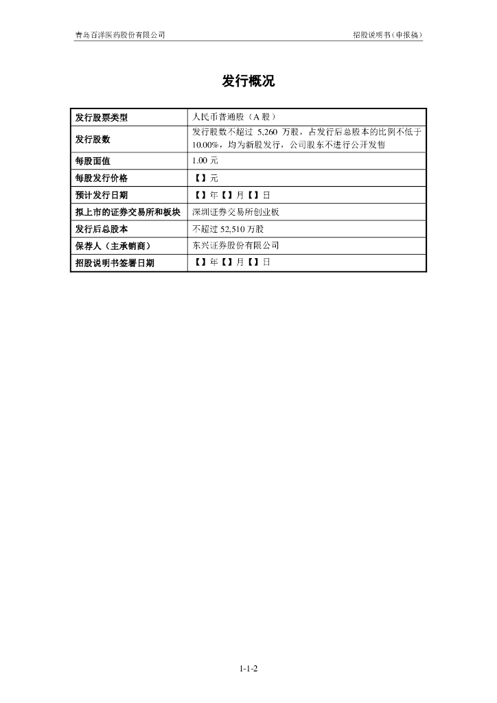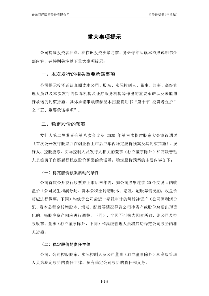 青岛百洋医药股份有限公司深交所创业板IPO上市招股说明书.pdf