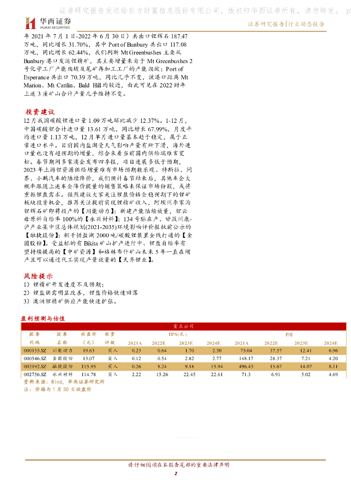 华西证券:公用事业行业动态报告:12月碳酸锂进口量环比减少12.37%,黑德兰港2022年精矿出口增长116.12%.pdf