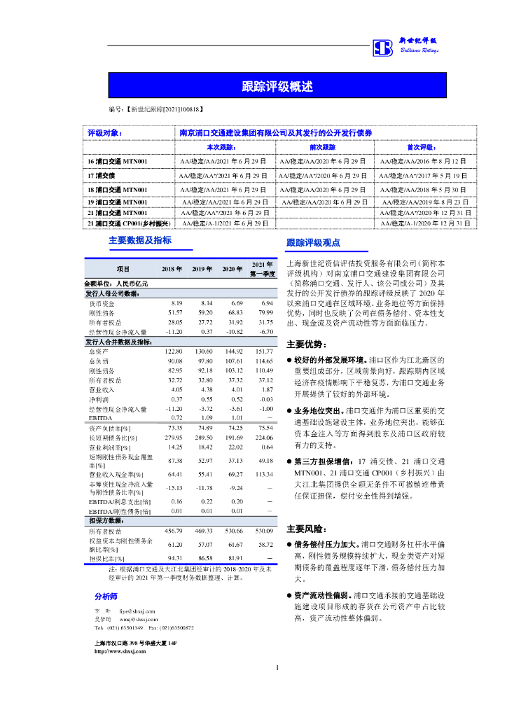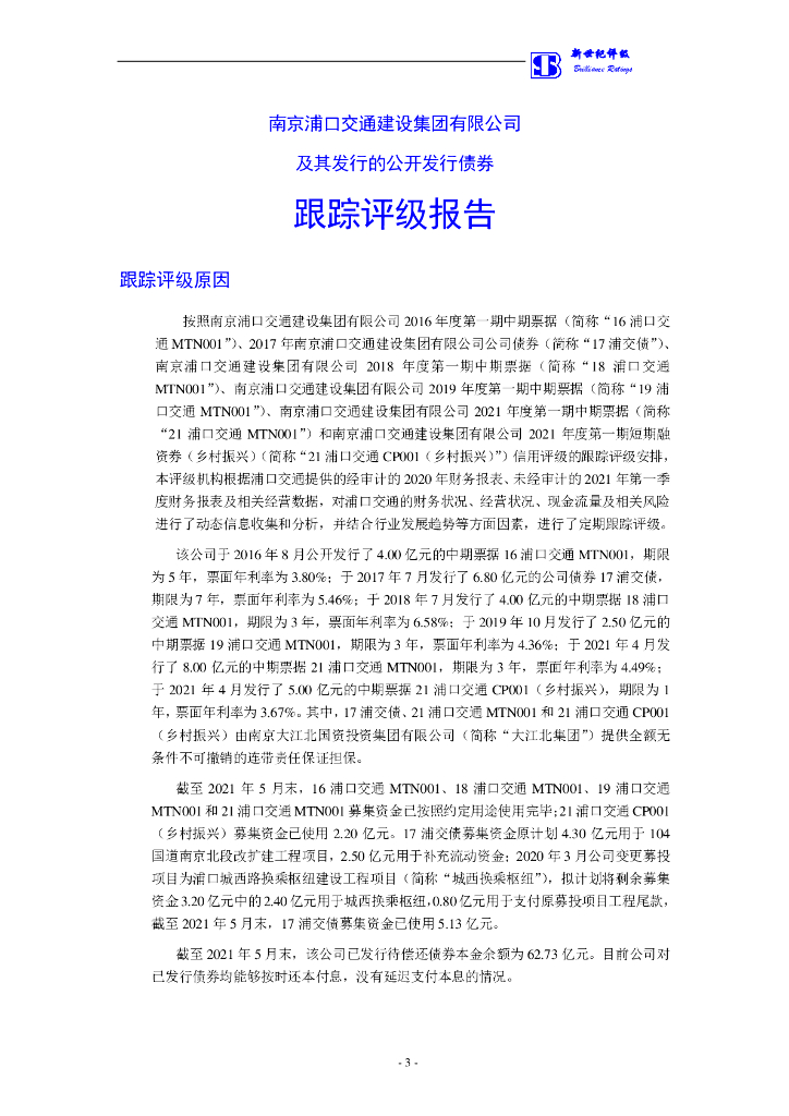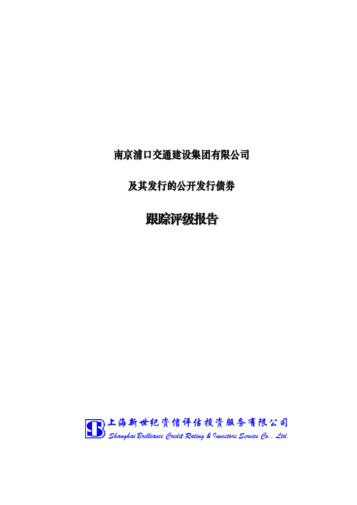 新世纪:南京浦口交通建设集团有限公司主体信用评级报告及跟踪评级安排.pdf