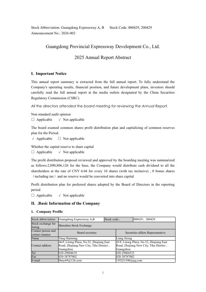 000429-粤高速B:2025年年度报告摘要(英文版).pdf