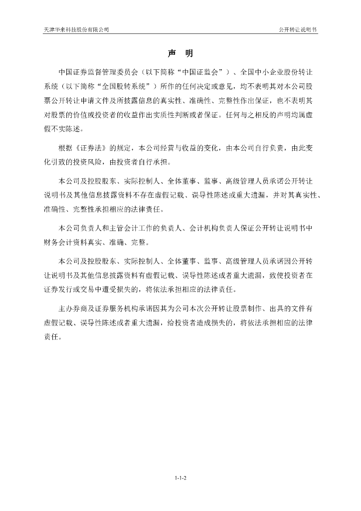 天津华来科技股份有限公司新三板挂牌公开转让说明书(申报稿).pdf