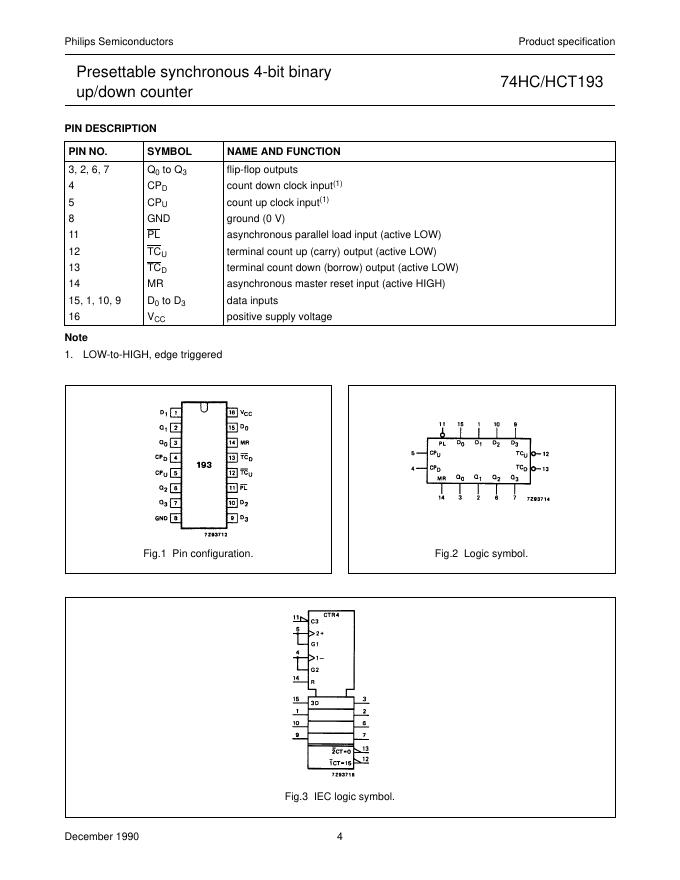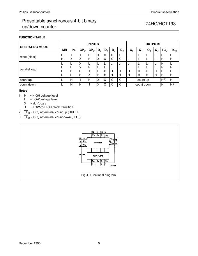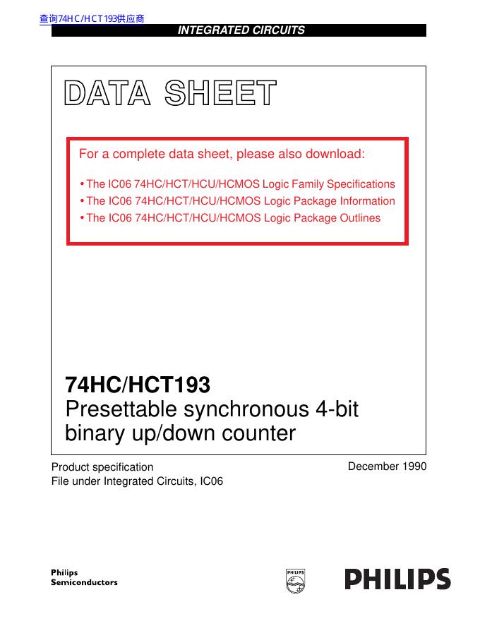 PHILIPS 74HC/HCT193 Presettable synchronous 4-bit binary up/down counter 数据手册.pdf