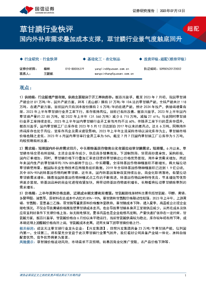 国信证券:草甘膦行业快评:国内外补库需求叠加成本支撑,草甘膦行业景气度触底回升.pdf