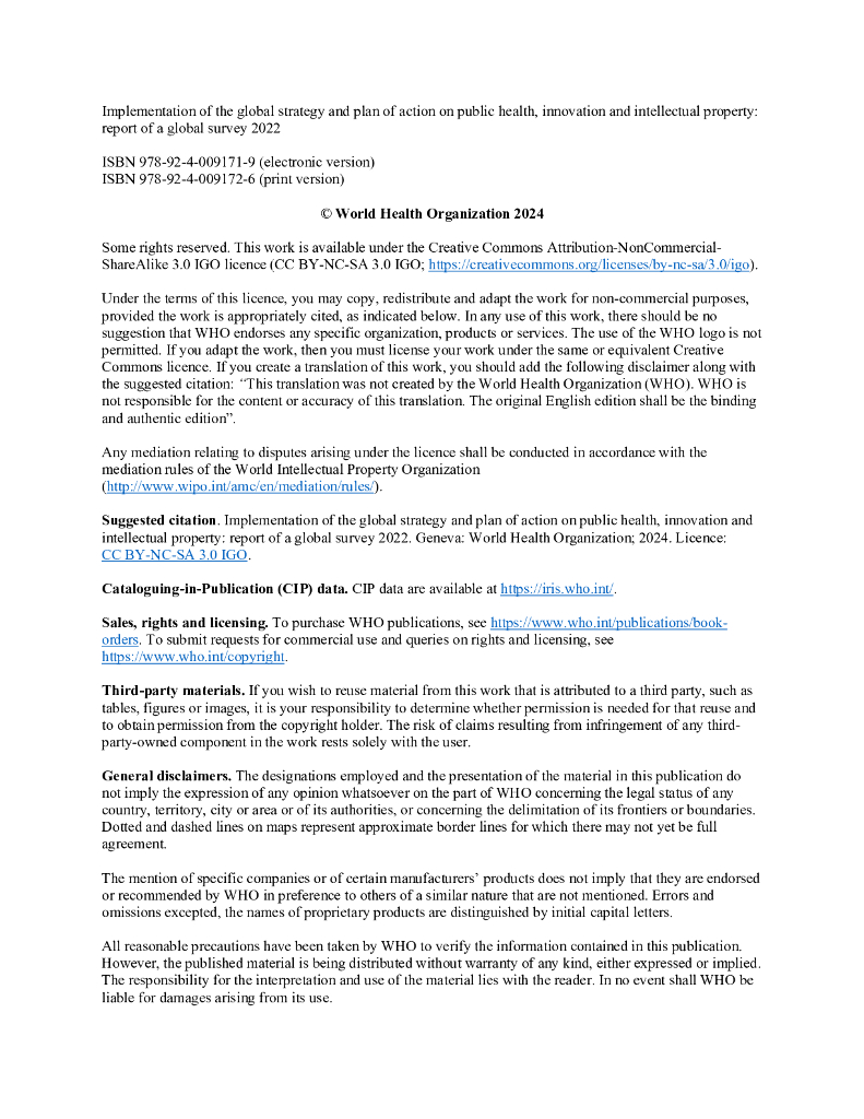 WHO世界卫生组织:2022年全球调查报告-公共卫生、创新和知识产权全球战略和行动计划的执行情况(英文版).pdf
