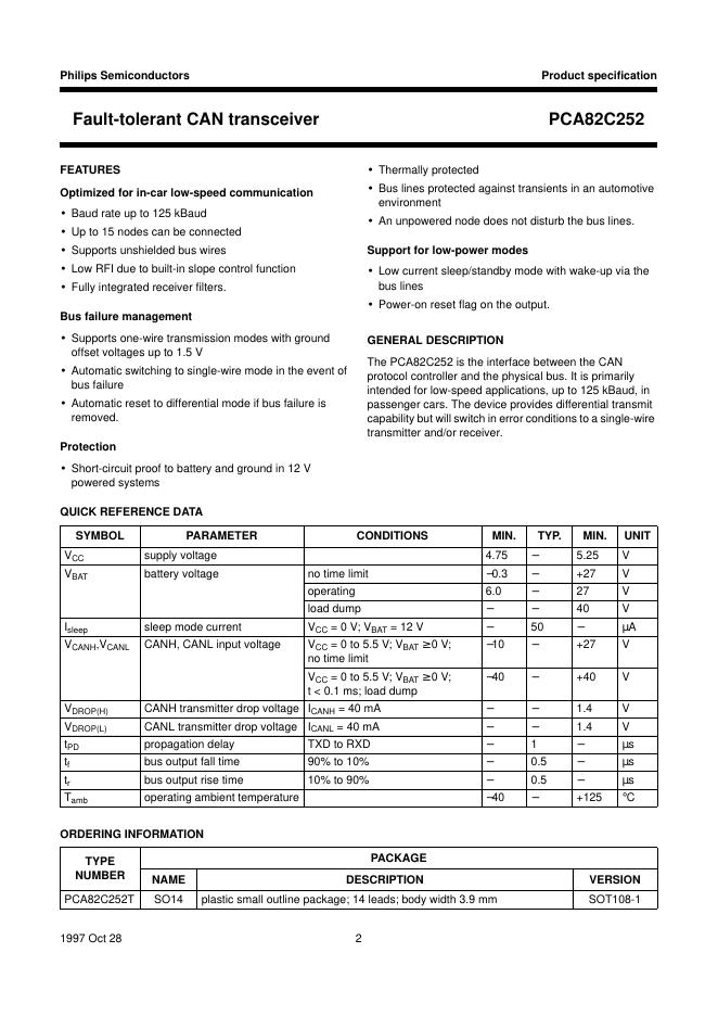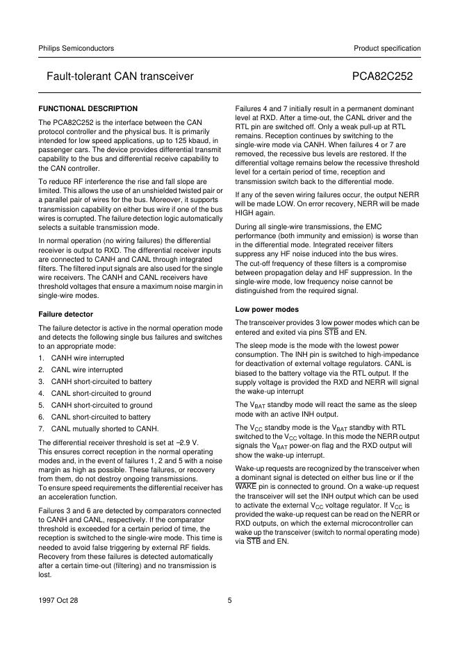 PHILIPS PCA82C252 Fault-tolerant CAN transceiver 数据手册.pdf