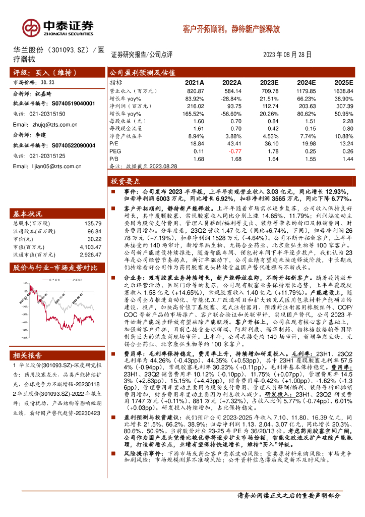 中泰证券:华兰股份(301093)-客户开拓顺利,静待新产能释放.pdf