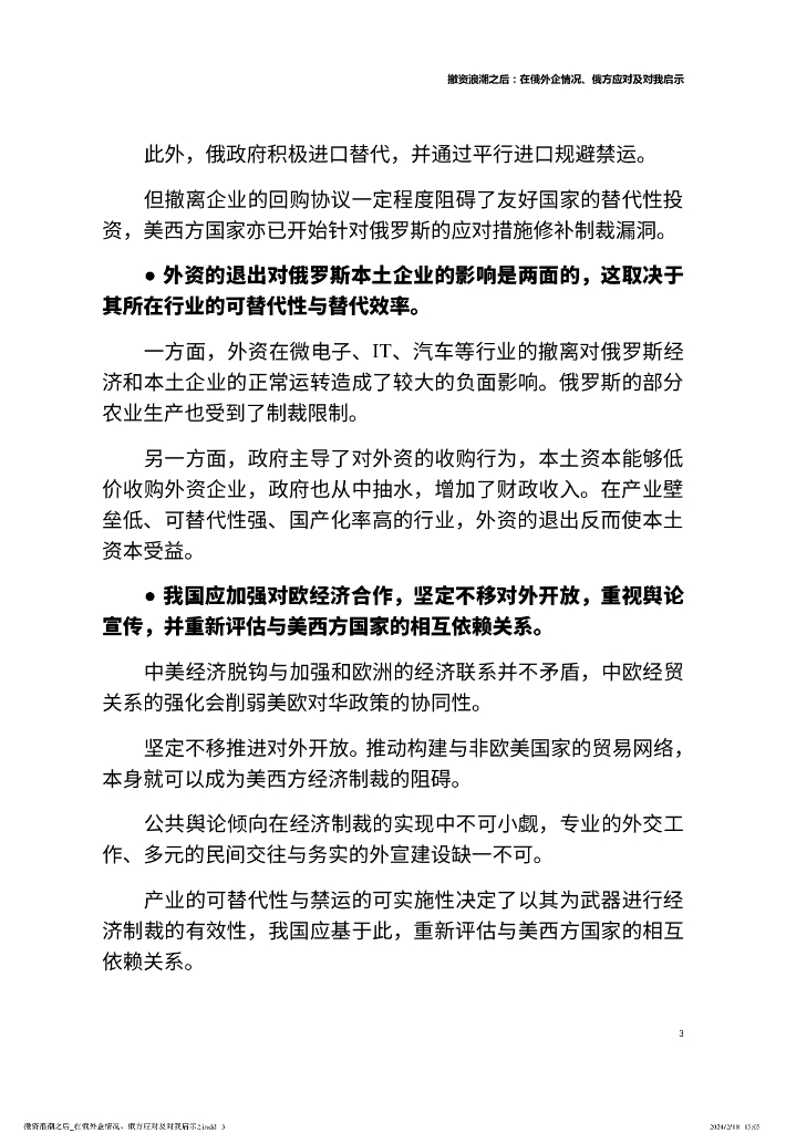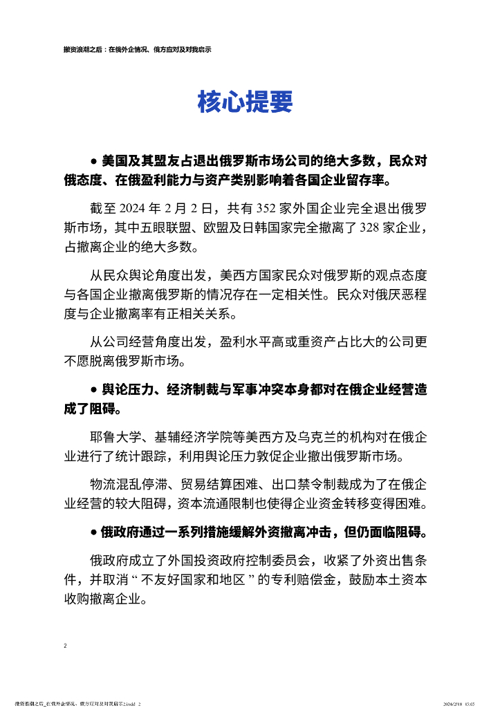 中国人民大学:2024撤资浪潮之后:在俄外企情况、俄方应对及对我启示.pdf