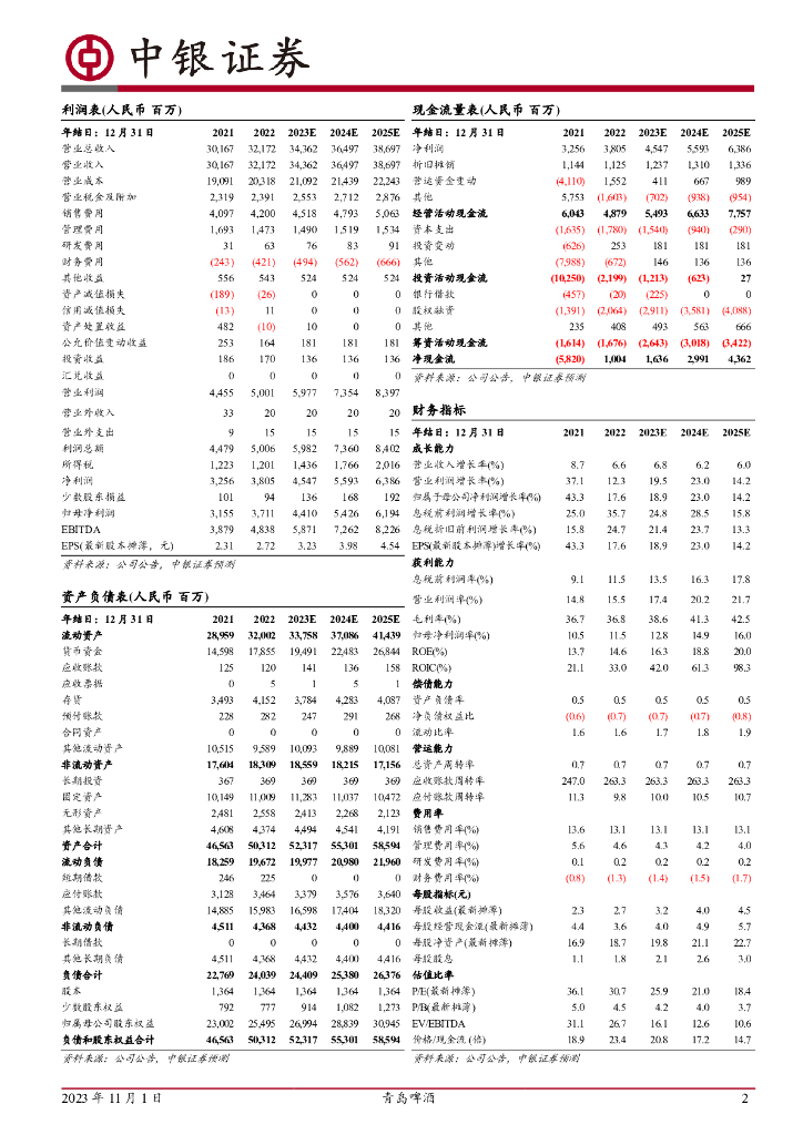 中银证券:青岛啤酒(600600)-高基数下3Q23销量回落,吨成本延续改善趋势.pdf