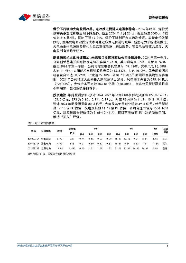 国信证券:华能国际(600011)-煤电盈利同比大幅增长,新能源盈利表现稳健.pdf