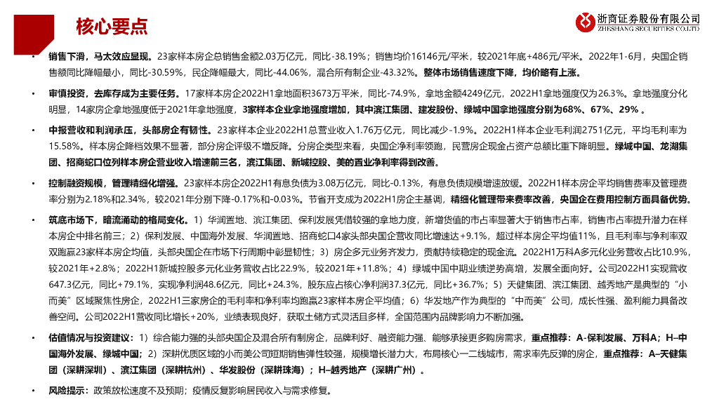 浙商证券:2022年房地产企业中报总结:房企求存求稳,格局分化显著.pdf