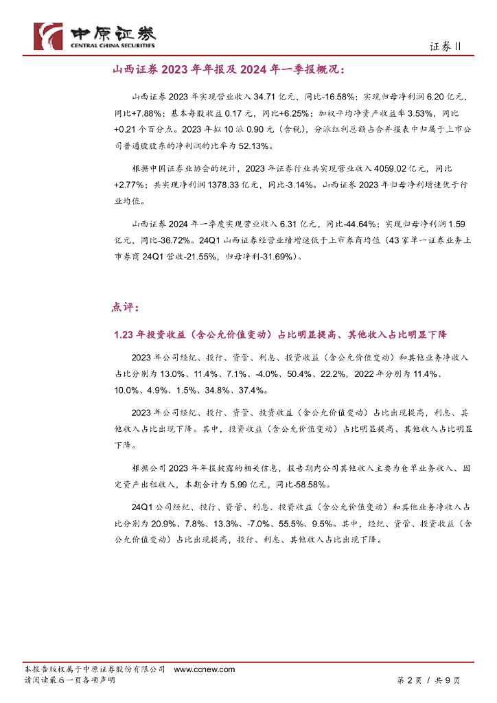 中原证券:山西证券(002500)-2023年年报及2024年一季报点评:发力机构经纪,区域投行优势明显,资管快速发展.pdf