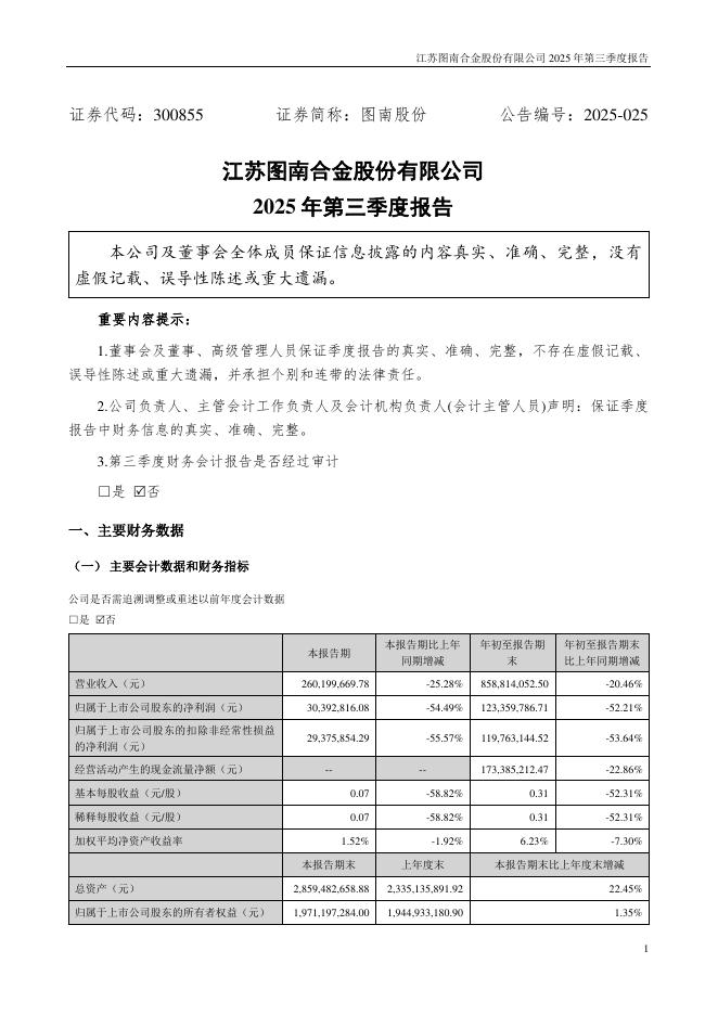 300855-图南股份:2025年三季度报告.pdf