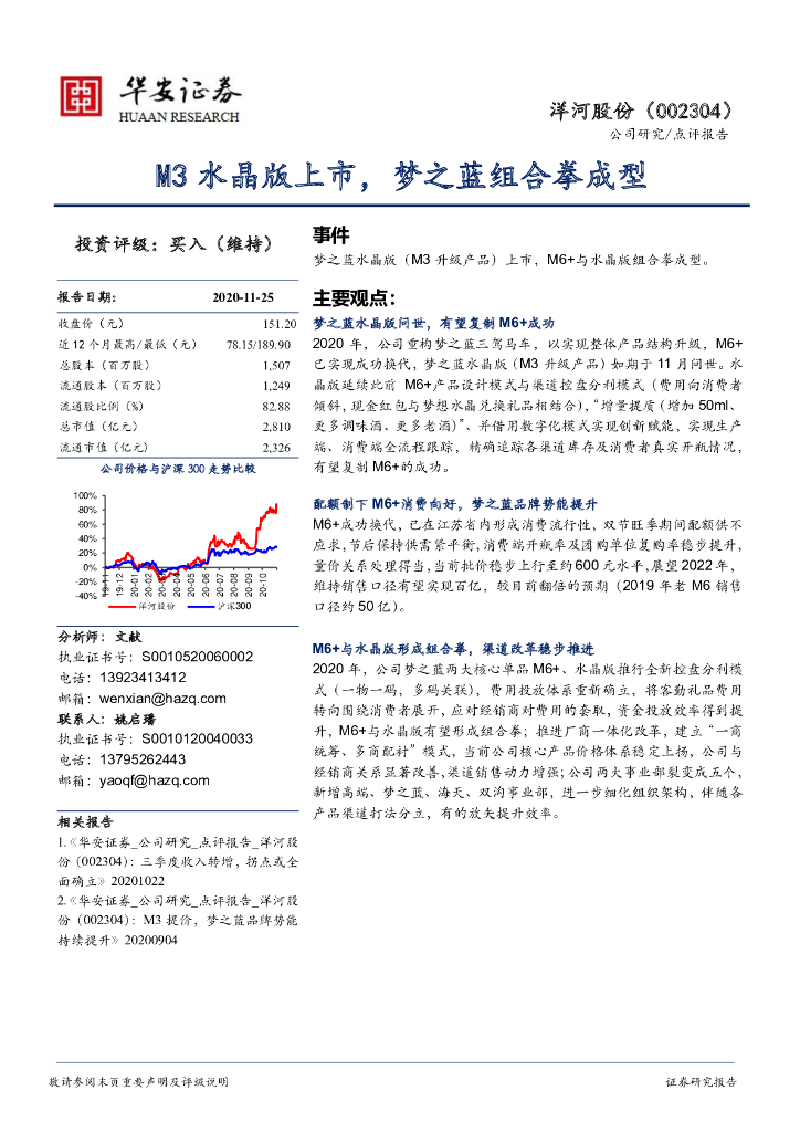 华安证券:洋河股份(002304)-M3水晶版上市,梦之蓝组合拳成型.pdf
