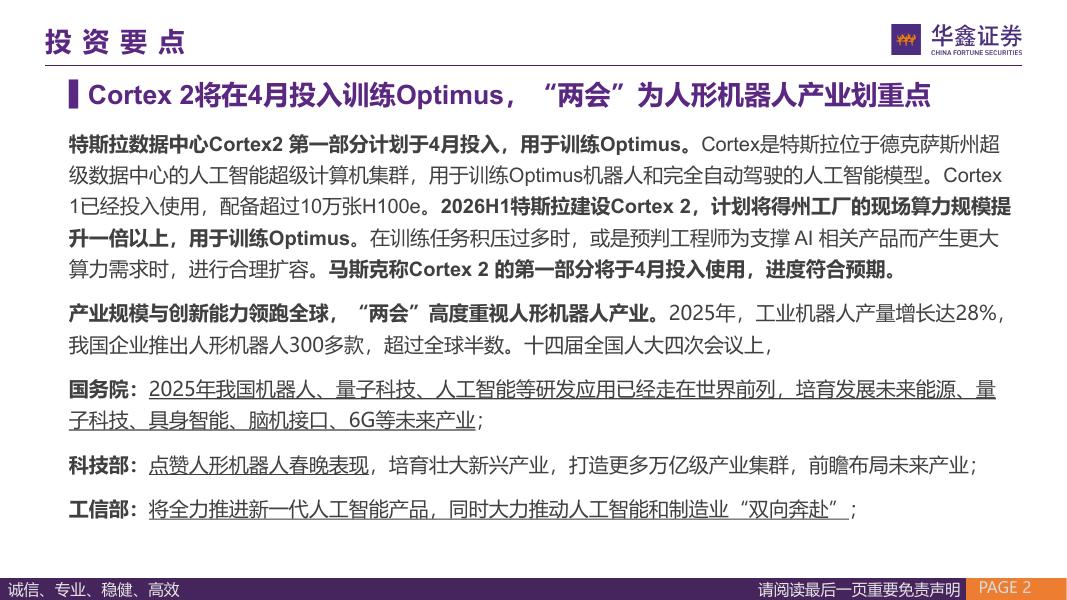 华鑫证券:汽车行业周报:Cortex2将在4月投入训练Optimus,“两会”为人形机器人产业划重点.pdf