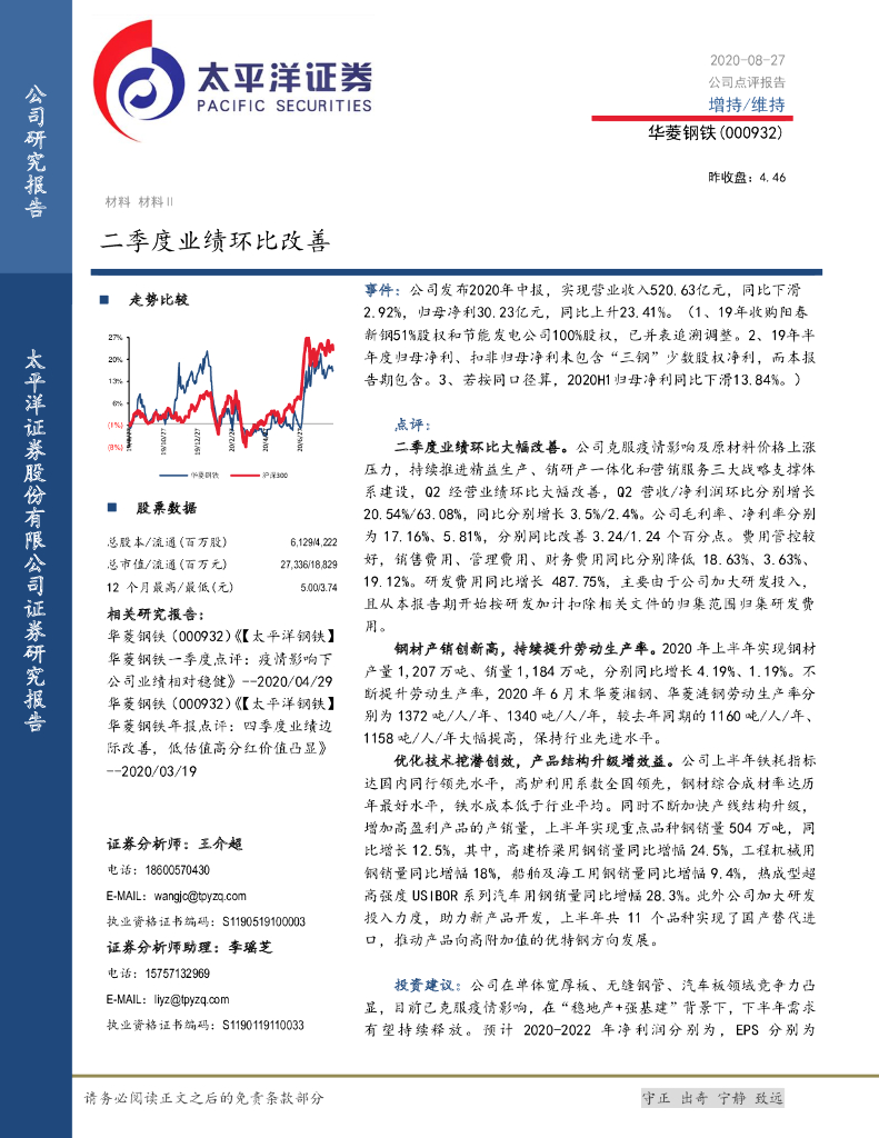 太平洋证券:华菱钢铁(000932)-二季度业绩环比改善.pdf