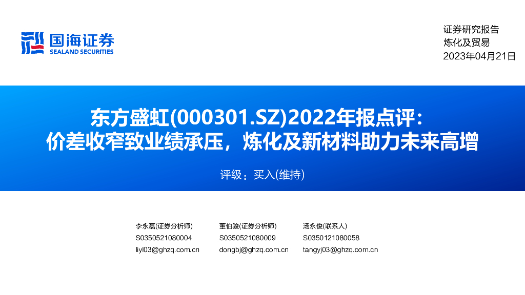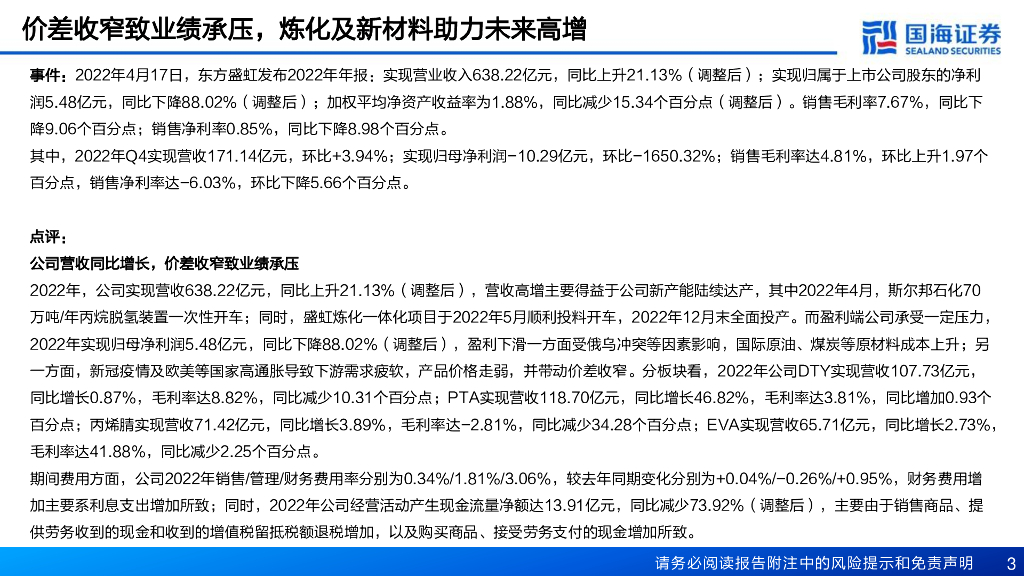 国海证券:东方盛虹(000301)-2022年报点评:价差收窄致业绩承压,炼化及新材料助力未来高增.pdf