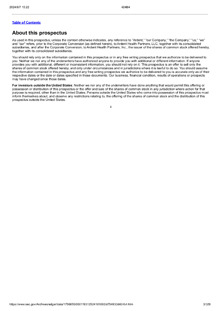 Ardent Health Partners, Inc美股纳斯达克IPO上市招股说明书.pdf
