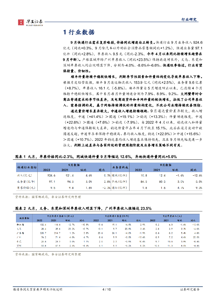 华安证券:物流行业周报:9月快递行业需求复苏略弱,龙头量价差异较大,双11物流保障强调分仓提速和送货上门.pdf