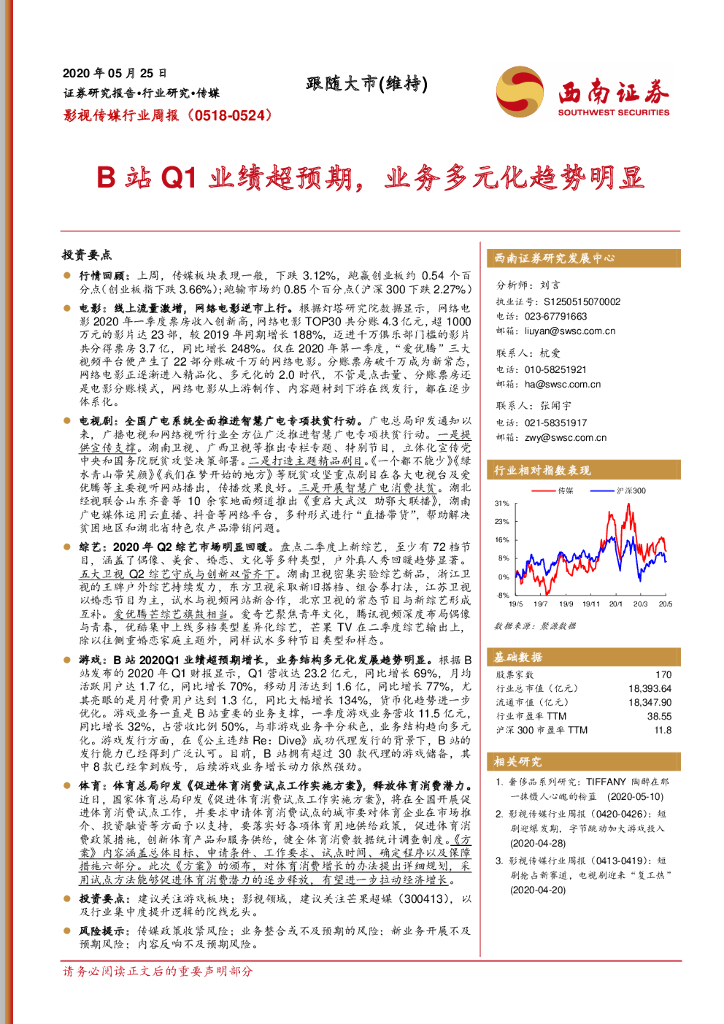 西南证券:影视传媒行业周报:B站Q1业绩超预期,业务多元化趋势明显.pdf