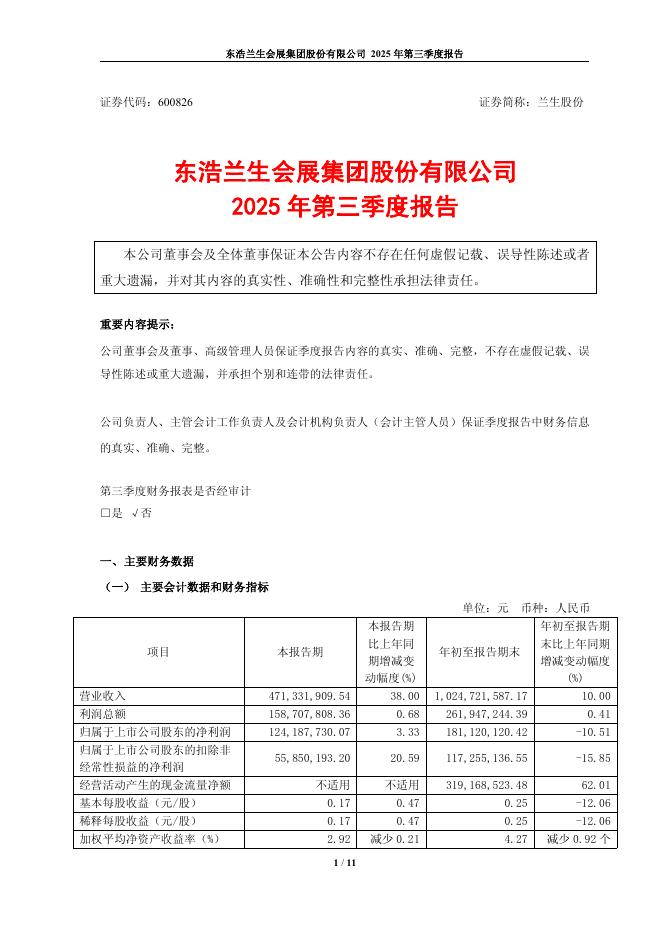 600826-兰生股份:东浩兰生会展集团股份有限公司2025年第三季度报告.pdf