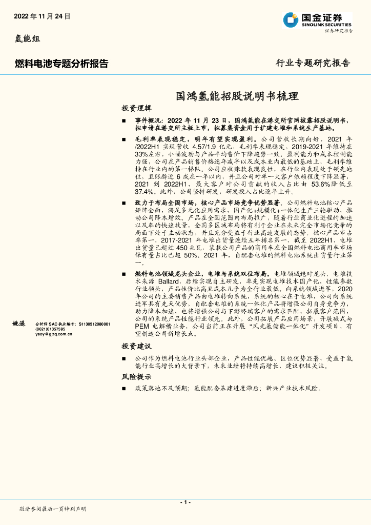 国金证券:燃料电池专题分析报告:国鸿氢能招股说明书梳理.pdf