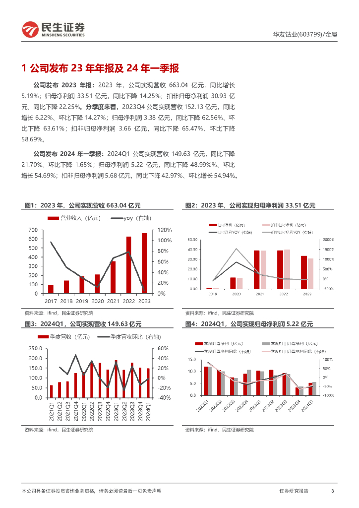 民生证券:华友钴业(603799)-2023年年报及2024年一季报点评:价格下行拖累业绩,一体化优势待显.pdf