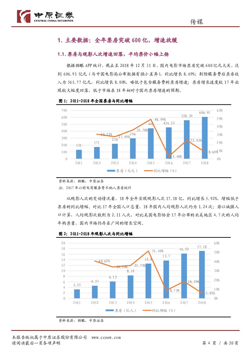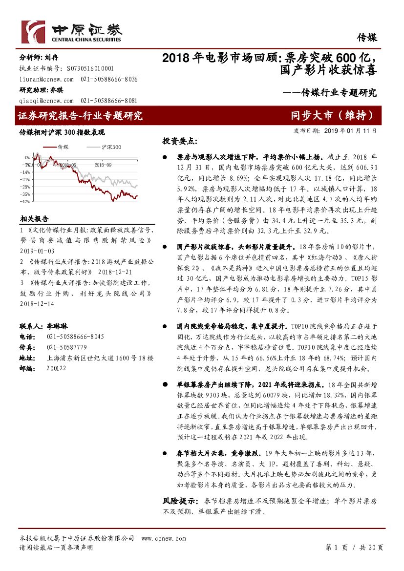 中原证券:传媒行业专题研究:2018年电影市场回顾:票房突破600亿,国产影片收获惊喜.pdf