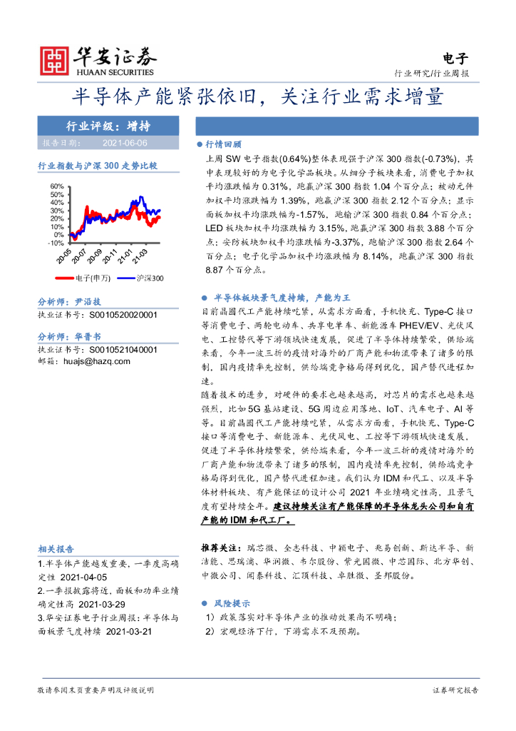 华安证券:电子行业周报:半导体产能紧张依旧,关注行业需求增量.pdf