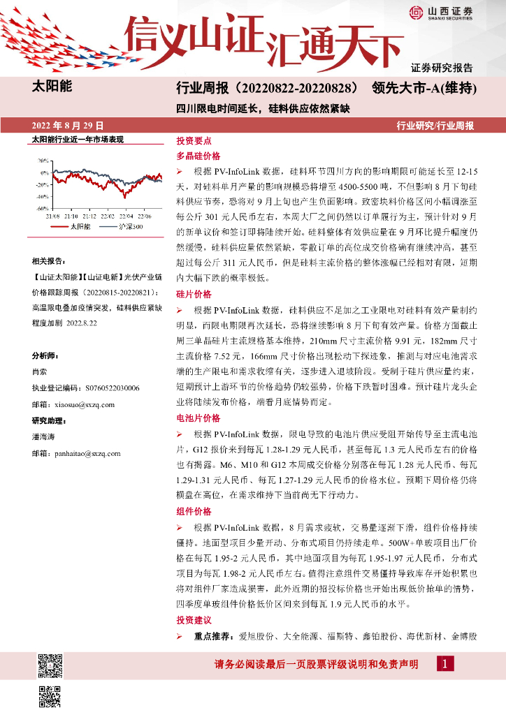 山西证券:太阳能行业周报:四川限电时间延长,硅料供应依然紧缺.pdf